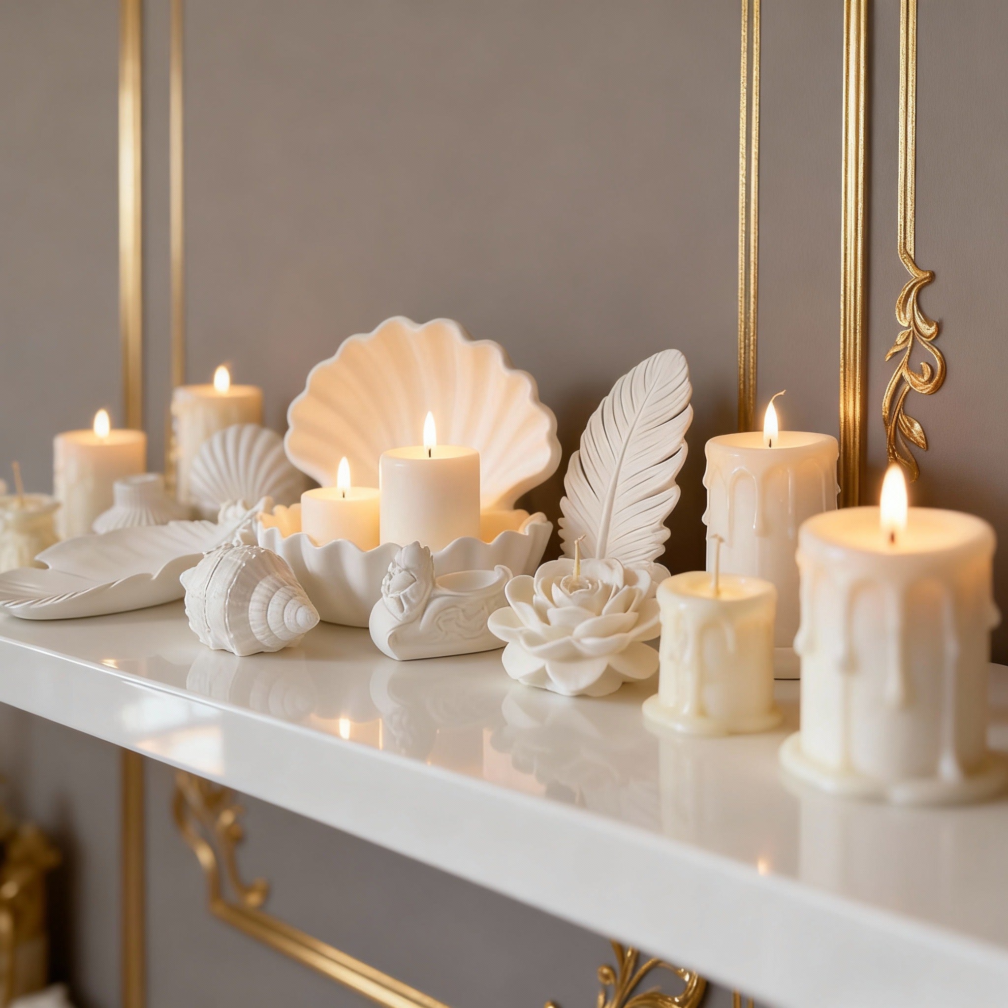 Sculpted Waves Ceramic Candle – White Flowers